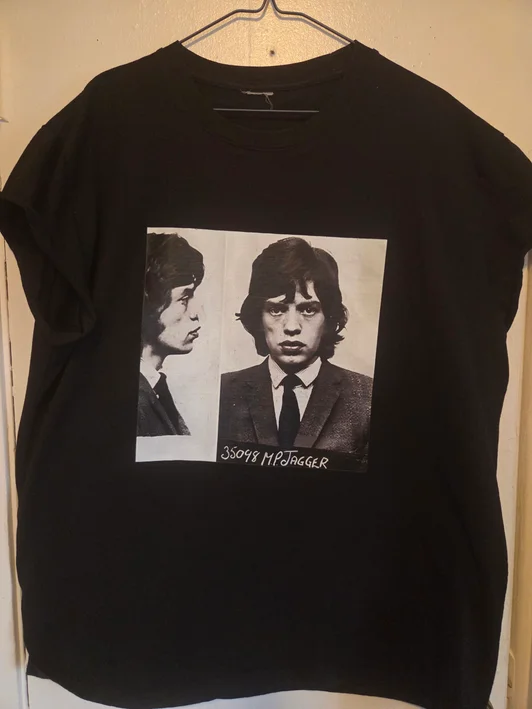 Rolling Stones - Mick Jagger Mug Shot Black T-Shirt #174 (2XL)